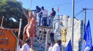 तर, दुसरीकडे डॉ. बाबासाहेब आंबेडकर पतळा निर्माण व देखरेख समितीच्यावतीने डॉ. बाबासाहेब आंबेडकर यांच्या पुतळ्याला माल्यार्पण करुन आंबेडकर नगरातून शेकडो आंबेडकरी समाजबांधवाच्या सहभागातुन मोर्चा काढण्यात आला. हा मोर्चा जनता नगर, गुरूनानक चौक, गांधी चौक होत छत्रपती शिवाजी महाराज चौकात पोहचला येथे छत्रपती शिवाजी महाराज यांच्या पुतळ्याला माल्यार्पण करण्यता आले तर उपविभागीय अधीकारी यांना निवेदन यांना मागणीचे निवेदन सुध्दा दिले.