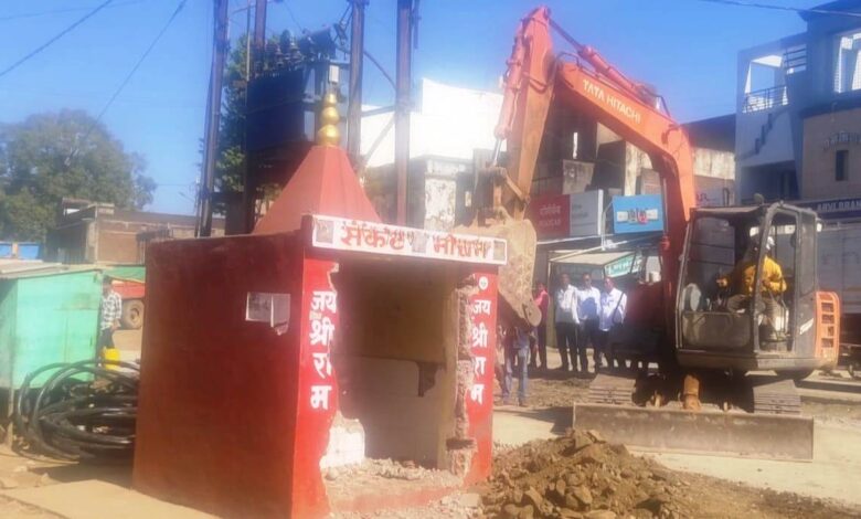 रस्ता बांधकामाला अडथळा ठरणारी मंदिरे प्रशासनाने तोडली