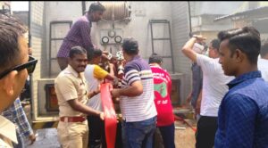 आर्वी,दि.१९:- मार्केट मधील दुकानदार आपआपली प्रतिष्ठाने उघडत असतांनाच निरंकारी प्रोव्हीजन मधील फ्रीज ब्लाष्ट होवुन मोठा आवाज झाला आणी यामुळे लागलेल्या आगीने पाहता पाहता रौद्ररुप धारण केले व लगतच्या दुकानांना सुध्दा ताब्यात घेतले. तब्बल चार तासा नंतर आग आटोक्यात आली मात्र तो पर्यंत पाच दुकाने जळुन खाक झाली होती. यात लाखो रुपयाचे नुकसान झाले आहे. बुधवारी (ता.१९) येथील कापड माकेट मध्ये हि दुर्घटना घडली.