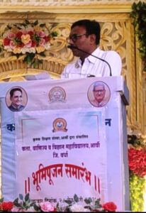 पीएम उषा योजनेअंतर्गत निवड झालेल्या कला, वाणिज्य व विज्ञान महाविद्यालयाच्या इमारत बांधकामाचे भुमीपूजन शुक्रवारी (ता.२८) त्यांच्या हस्ते करण्यात आले यावेळी प्रमुख अतिथी म्हणुन ते मार्गदर्शन करीत होते.