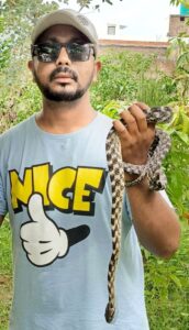 गुरूवारी (ता.१७) अशोक खोडे यांना त्यांच्या राहत्या घरात साप आढळुन आला. त्यांनी घाबरुन न जाता याची माहिती सर्प मित्र व प्राणी संवर्धन कार्यकर्ते डॉ. मनीष ठाकरे यांना दिली. त्यांनी वेळ न दौडता खोडे यांचे घर गाठले. सुरक्षेच्या उपायासह अत्यंत शिताफीने त्यांनी सापाला जिवंत पकडले. त्याची ओळख करुन घेतली आणी लगतच्या वनक्षेत्र परिसरात सुरक्षीत पणे नेवुन सोडले. त्यांना प्राणीमित्र गौरव ठाकुर, शुभम जगताप, संतोष पडोळे, आनंद काळे, साहिल ठाकरे, कार्तीक कातोडे, नयन थिगळे आदिंनी मदत केली.