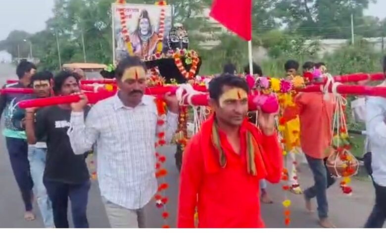 सिध्देश्र्वर धाम मंदिरच्या भावीक भक्तांनी रुक्मीणीचे माहेर तिर्थक्षेत्र कौंडण्यपुर येथुन काढली पायदळ जल कावड यात्रा